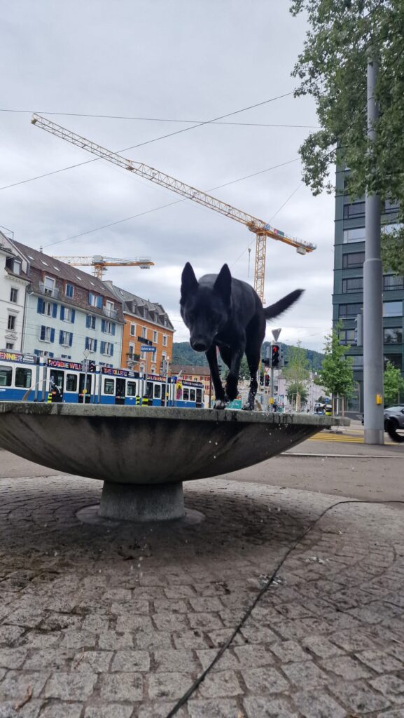 Ich scherze gerne damit, fünf Hunde zu haben, da ein Pferd in der Stadt schwierig ist – ich müsste einen solchen “Heiligen Hund” mit Hut und Mantel tarnen und dürfte ihn wohl auch nicht reiten, um ihn ungesehen bis zu mir nach Hause zu bringen.